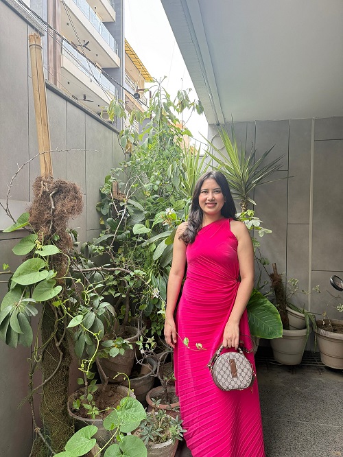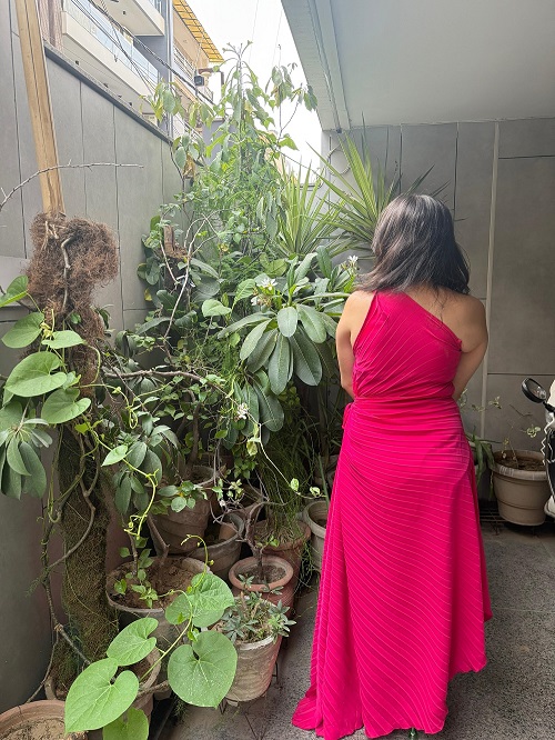 Turn heads in this stunning fuchsia pink one-shoulder gown that exudes elegance and modern glamour. The dress features a graceful draped silhouette with pleated textures and soft gathers that flatter the figure.