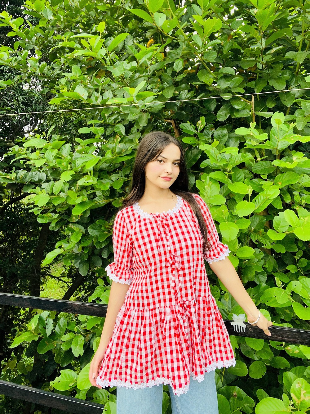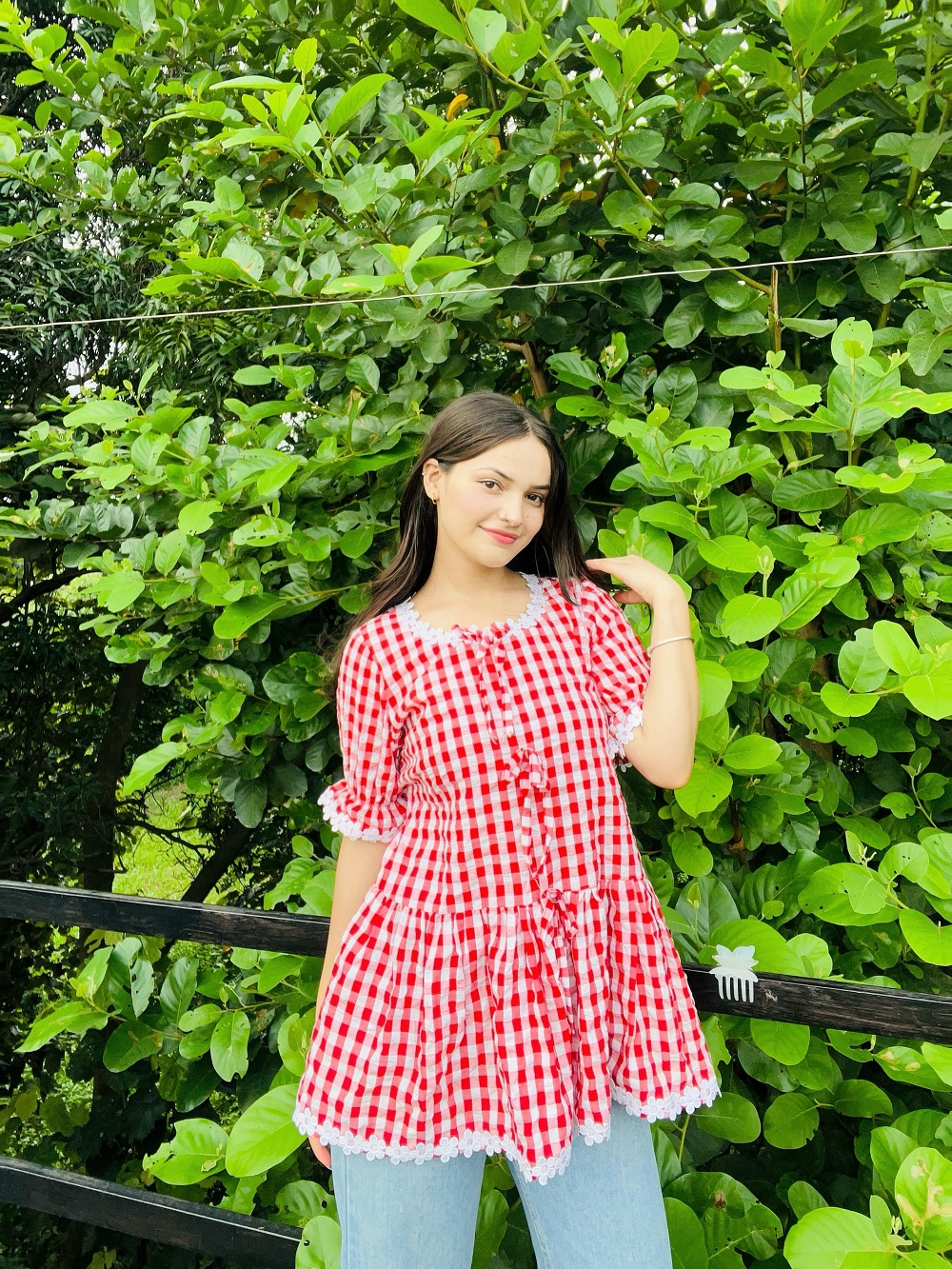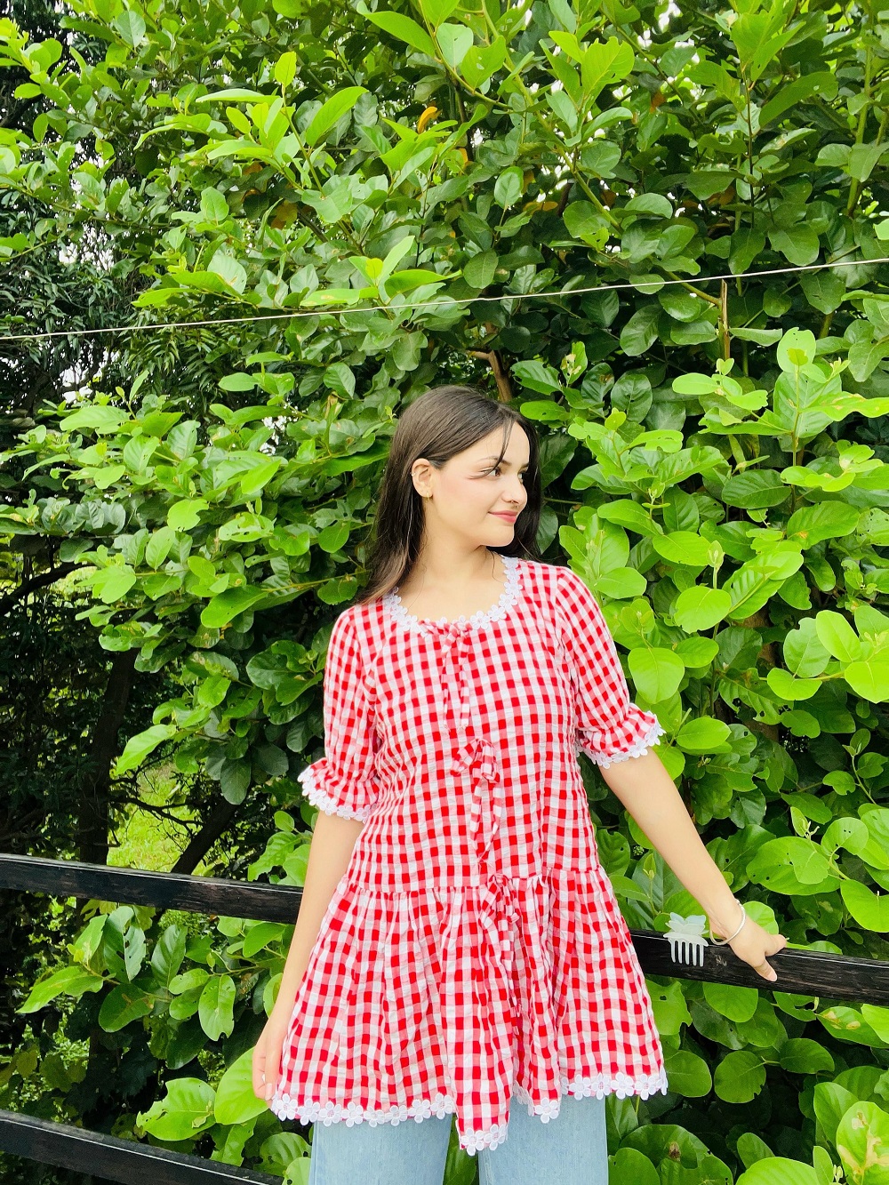 Be the first to review “Red & White Gingham Frill Peplum Top with Lace Trim”