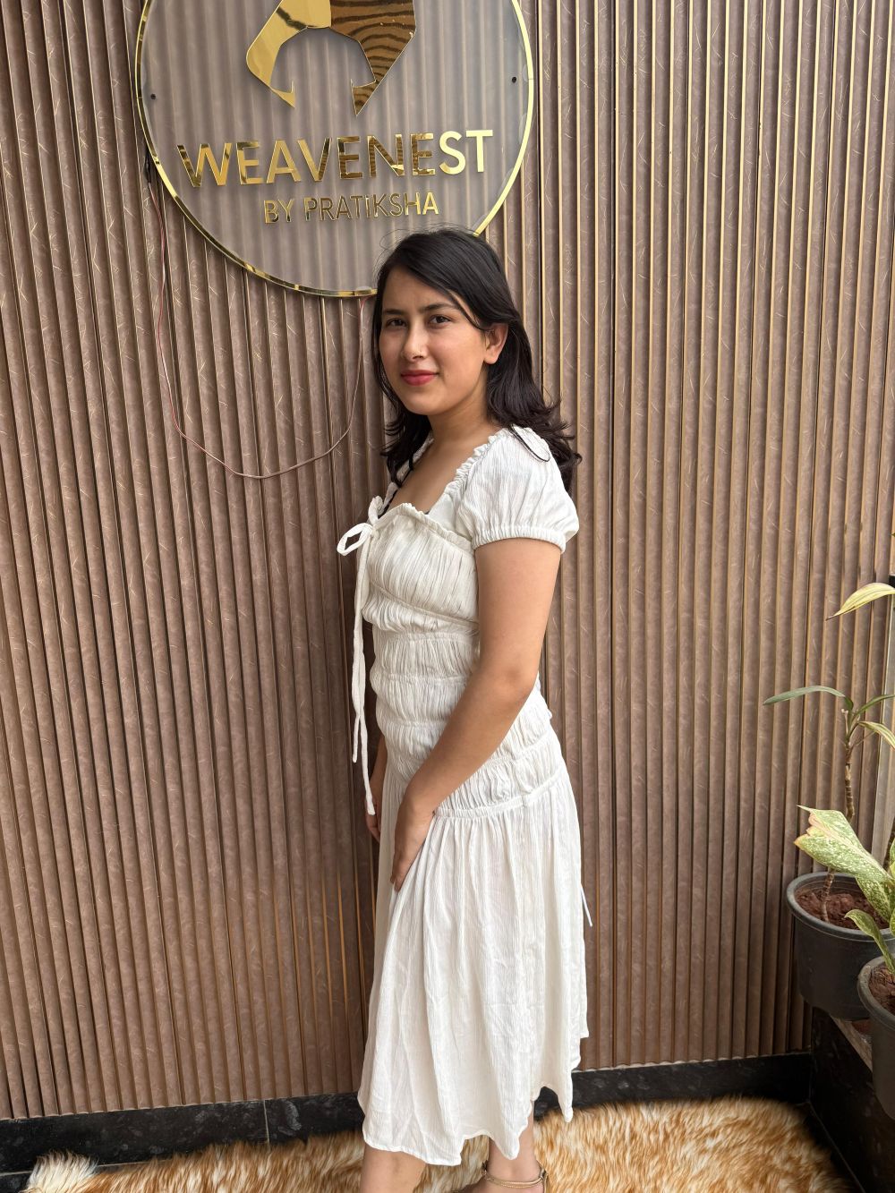 & Free ShippingThe Ivory Whisper Smocked Midi is a timeless and elegant summer dress in a soft off-white tone.